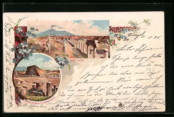 Lithographie Pompei, Foro Civile, Tempio d`Ercole e Treatro Tragico