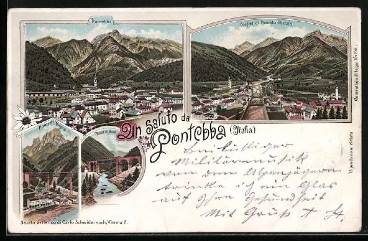 Lithographie Pontebba, Confine di Pontebba, Ponte di Dogna, Ponte di Muro
