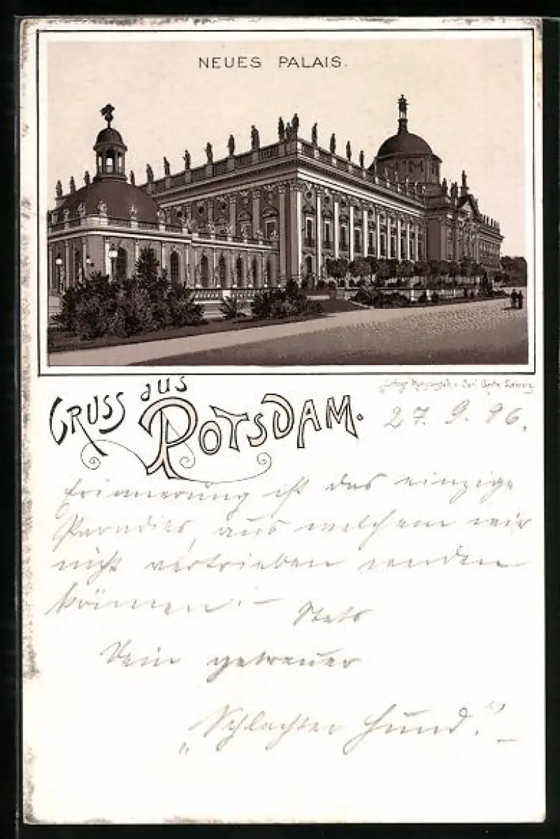 Lithographie Potsdam, Blick auf das Neue Palais