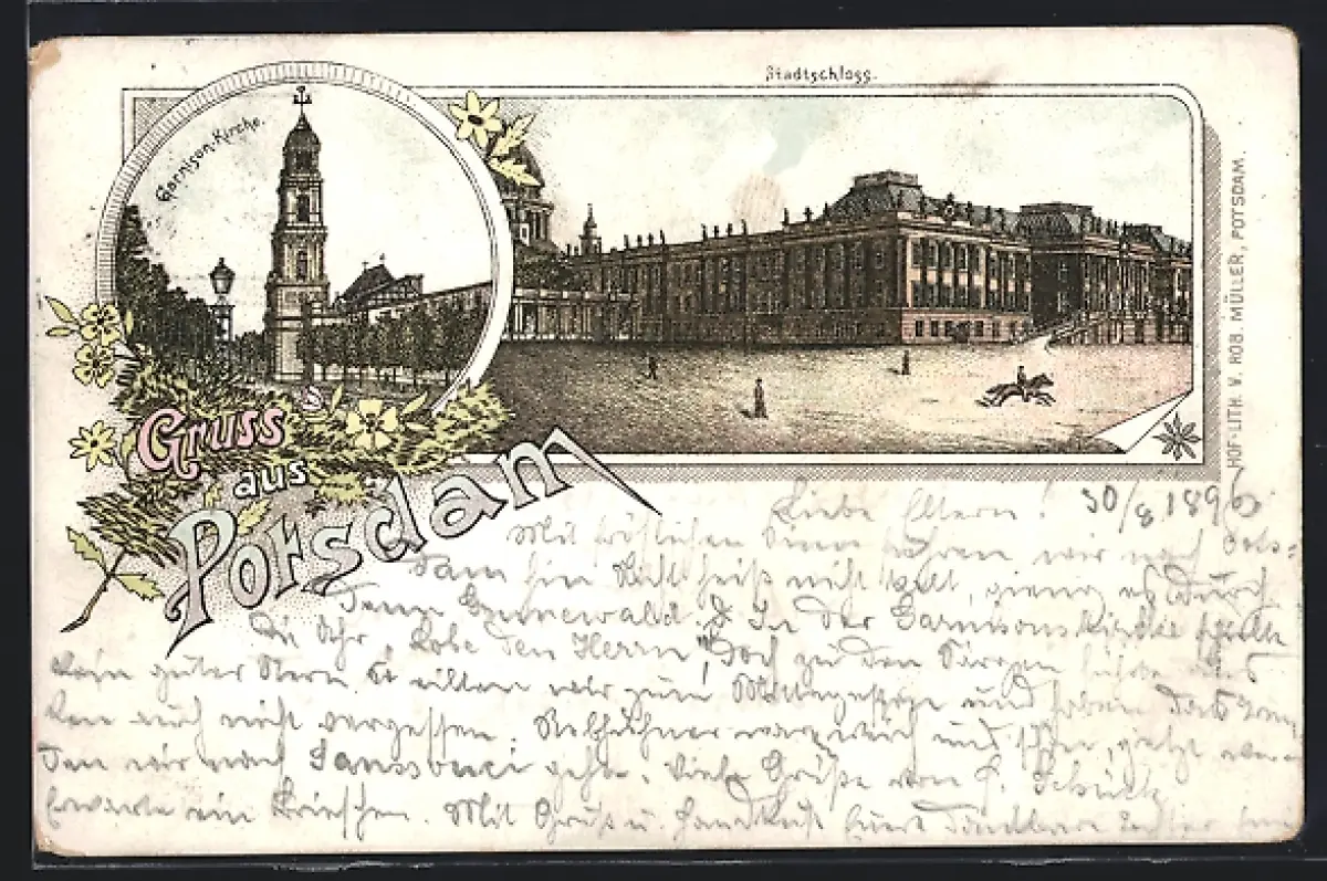 Lithographie Potsdam, Garnisonkirche, Stadtschloss