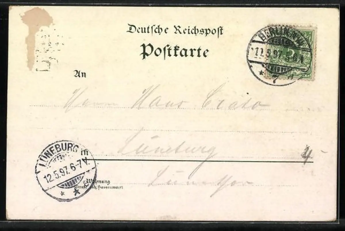 gelaufen 1897, rückseitig Oberflächenschaden, guter Zustand