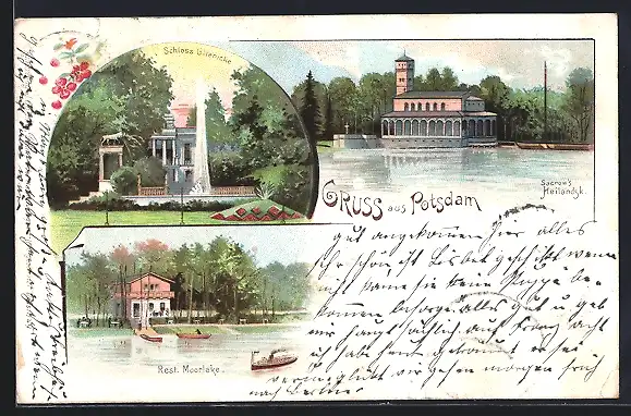 Lithographie Potsdam, Schloss Glienicke, Restaurant Moorlake
