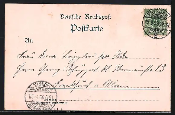 gelaufen 1899, Eckknick rechts und links unten, guter Zustand