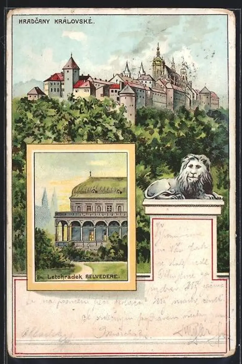 Lithographie Prag / Praha, Hradcany Kralovske, Letohradek Belvedere