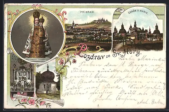 Lithographie Pribram, Chrám P. Marie, Sv. Hory, Hlavni Oltár, Studánka