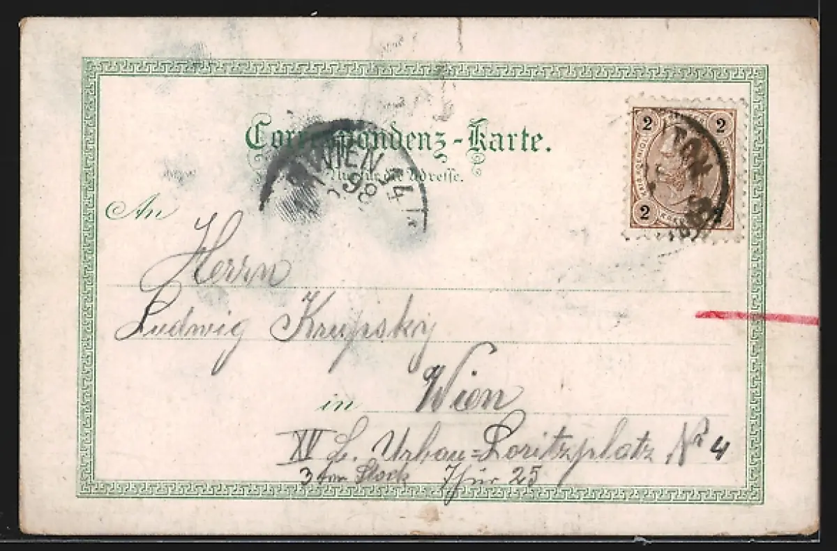gelaufen 1898, minimaler Einriss oben mittig, guter Zustand