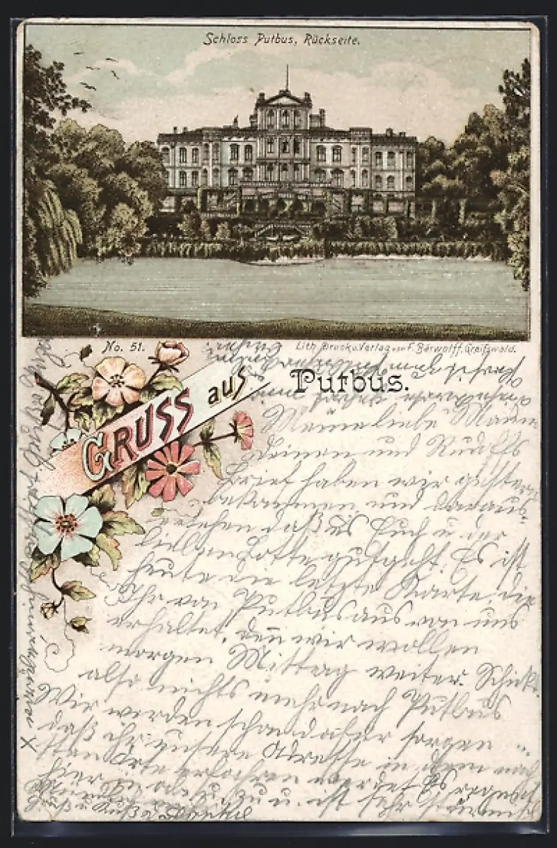Lithographie Putbus, Rückseite des Schlosses