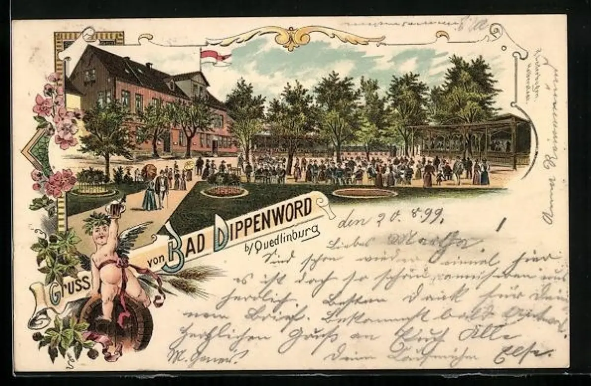 Lithographie Quedlinburg, Gasthof Bad Dippenword, Engel