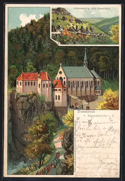 Lithographie Rappoltsweiler i. E., Dusenbach mit Kirche