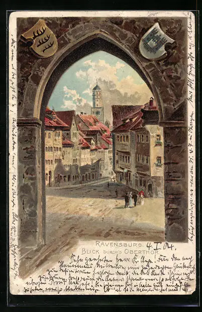 Lithographie Ravensburg, Blick durch`s Oberthor