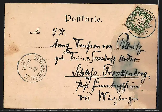 gelaufen 1900, Eckknicke unten, guter Zustand