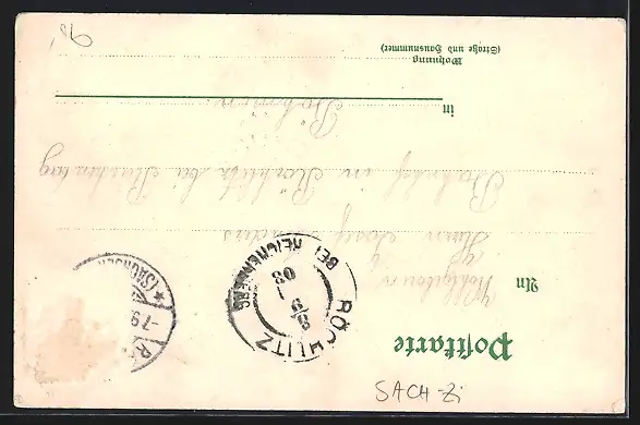 gelaufen 1903, Eckknick re. unten, guter Zustand