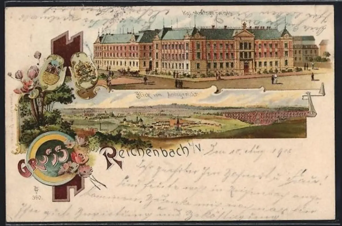 Lithographie Reichenbach i. V., Blick zum Amtsgericht
