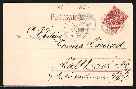 Personenbezogene Daten auf der Rückseite der Karte wurden durch blauen Textmarker unkenntlich gemacht. Die blauen Stellen sind auf die Vorderseite durchgeweicht und wirken sich negativ auf das Postkartenfoto aus