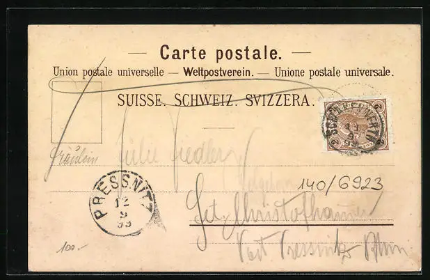 gelaufen 1899, Eckknick li. unten, guter Zustand