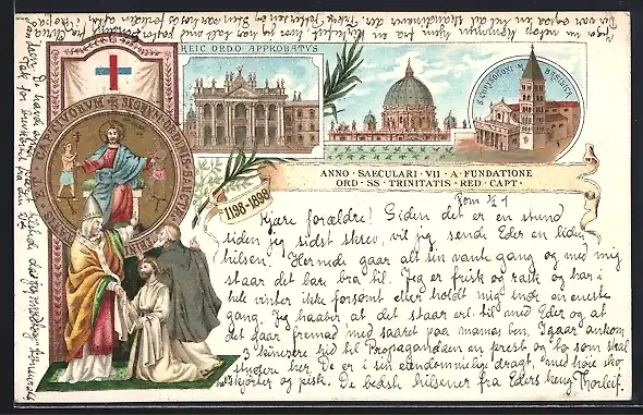 Lithographie Roma, Anno Saeculari VII a Fundatione Ord SS Trinitatis Red Capt, S. Chrysogoni M. Basilica