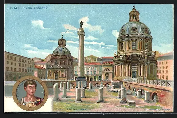 Lithographie Roma, Foro Traiano, Porträt Traiano