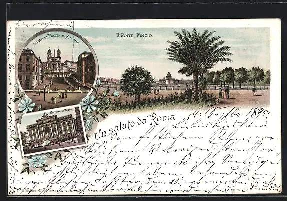 Lithographie Roma, Monte Pincio, Scala di Piazza di Spagnia, Fontana di Trevi