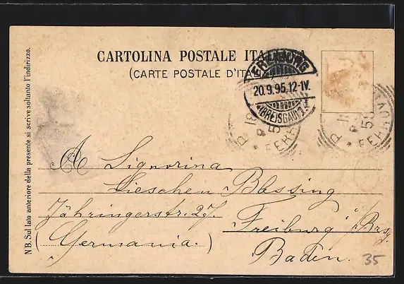 gelaufen 1895, Briefmarke entfernt, guter Zustand