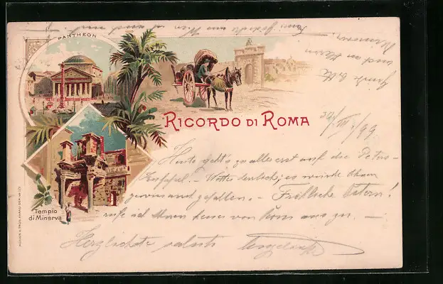 Lithographie Roma, Pantheon, Tempio di Minerva