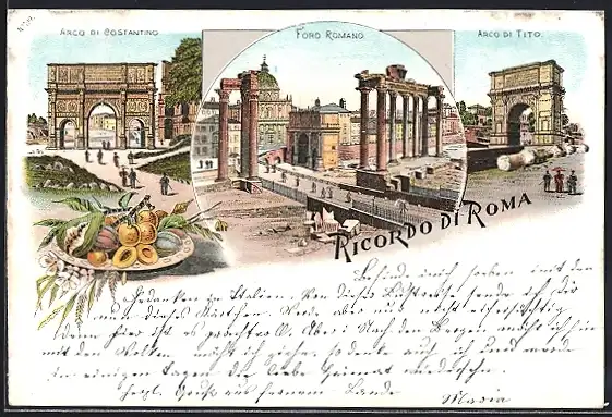Lithographie Roma / Rom, Arco di Costantino, Foro Romano, Ansichtskarten-Reklame, Ansichtskartengeschichte