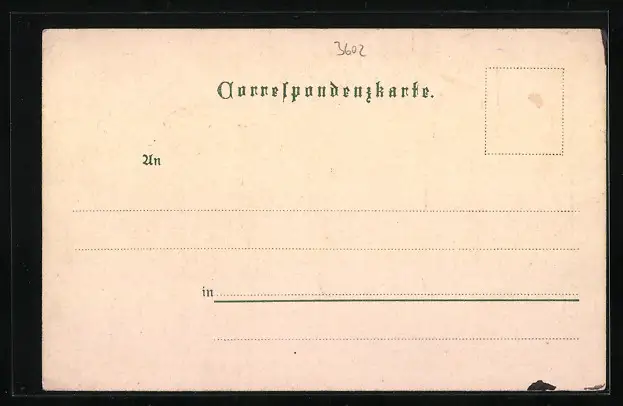Personenbezogene Daten auf der Rückseite der Karte wurden durch blauen Textmarker unkenntlich gemacht. Die blauen Stellen sind auf die Vorderseite durchgeweicht und wirken sich negativ auf das Postkartenfoto aus