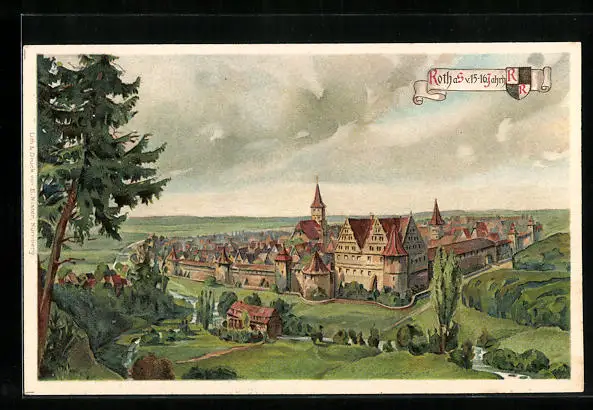 Lithographie Rotha, Totalansicht v. 15-16 Jahrhundert