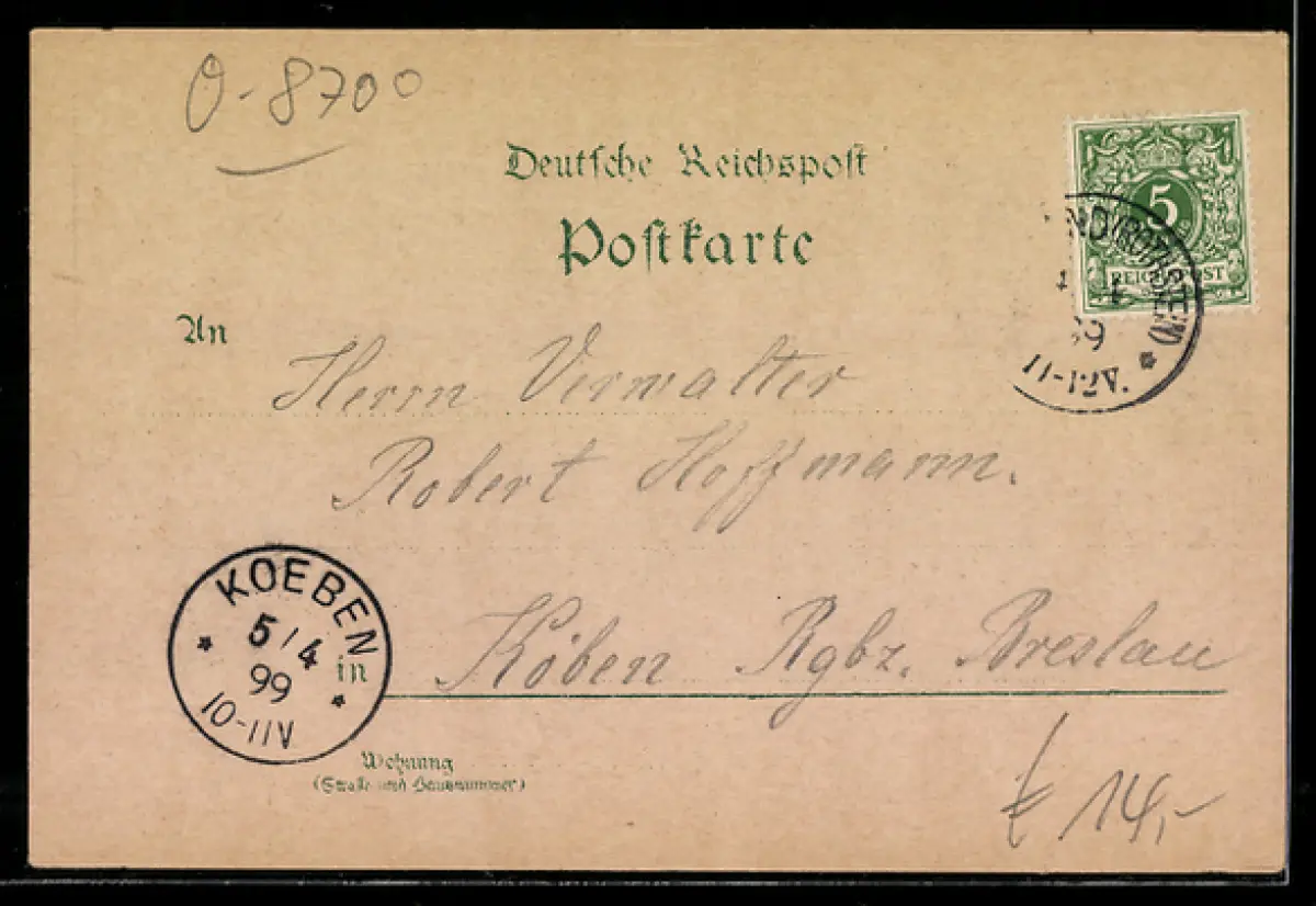 gelaufen 1899, Eckknick li. oben, guter Zustand