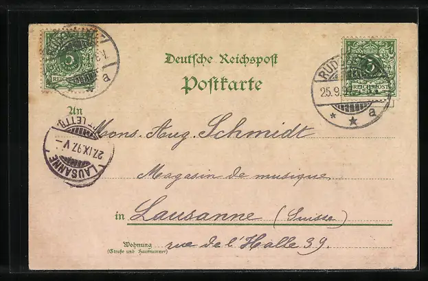 gelaufen 1897, Bugspuren unten li., guter Zustand