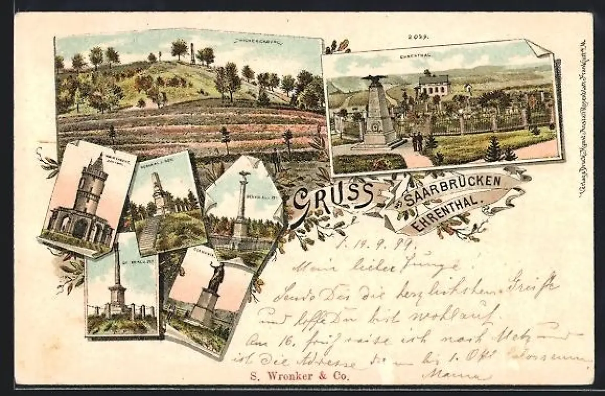 Lithographie Saarbrücken /Ehrenthal, Denkmal, Germania, Ehrenthal