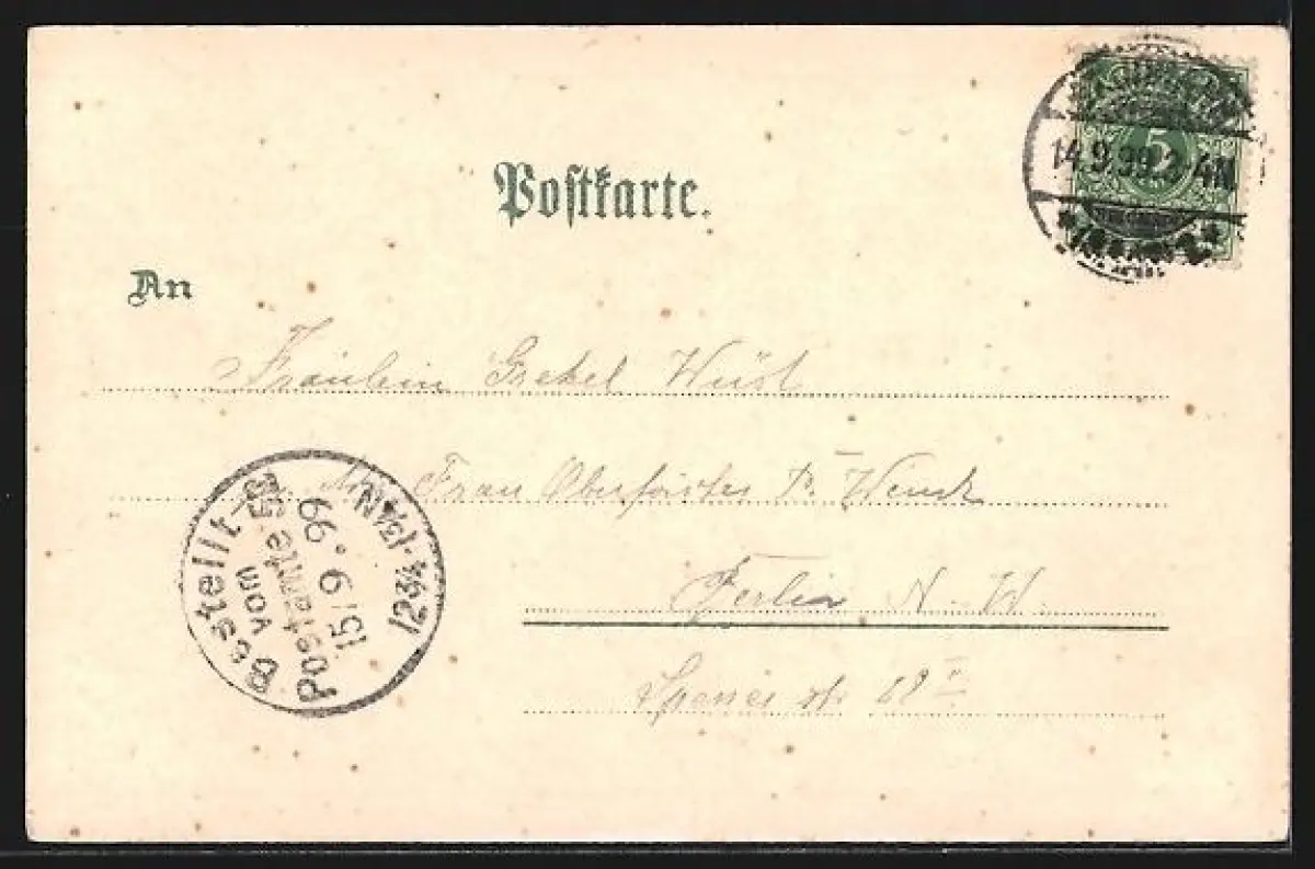 gelaufen 1899, Eckknick li. oben, Abriebspur unten mittig, guter Zustand