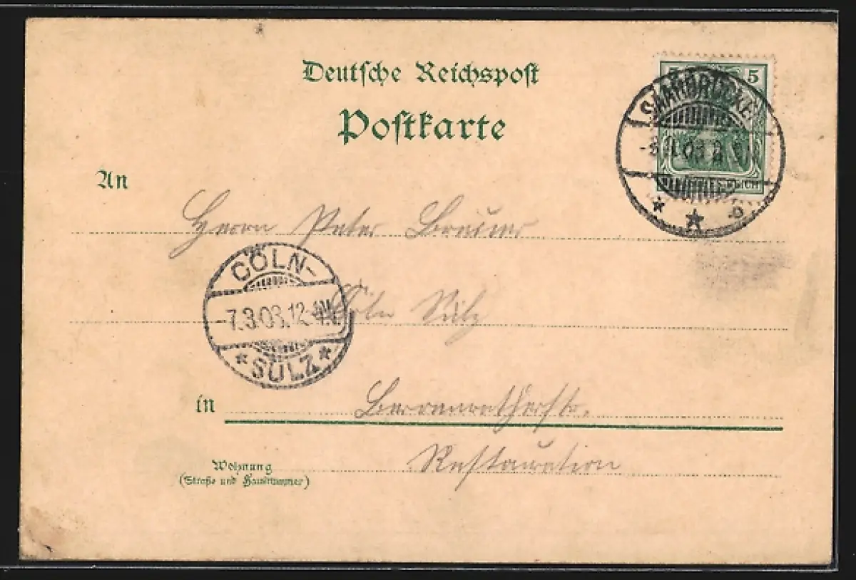 gelaufen 1903, Eckknick rechts unten, guter Zustand