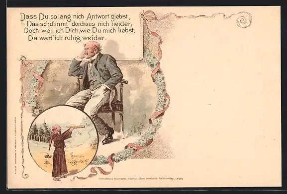 Lithographie Sächsischer Mundartdichter, Dass Du so lang nich Antwort giebst..., Herr von Toggenburg