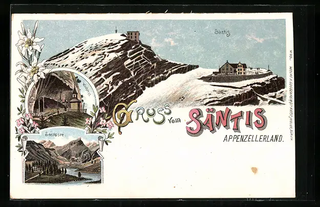 Lithographie Säntis, Wildkirchli und Seealpsee