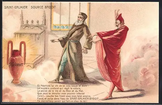 Lithographie Saint-Galmier, Source Badoit, Et Méphisto lui dit de sa voix basse..., Reklame