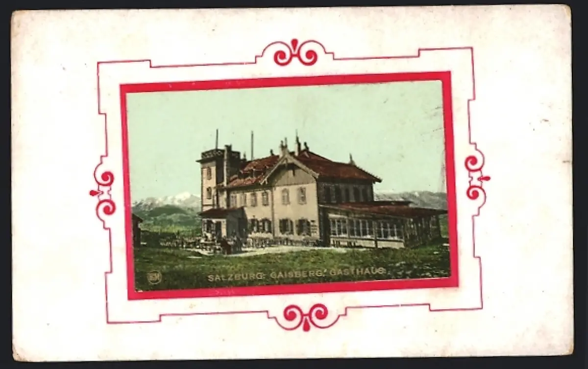 Lithographie Salzburg, Gaisberg mit Gasthaus, Passepartout