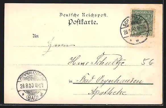 gelaufen 1900, Stempelspur, Eckknick oben re., guter Zustand