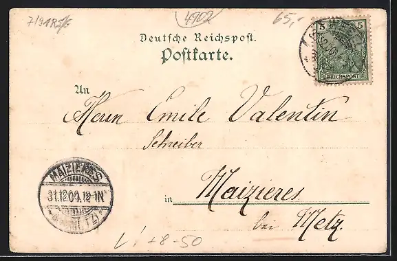 gelaufen 1900, Eckknick re. unten, guter Zustand