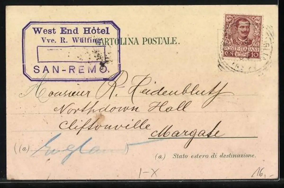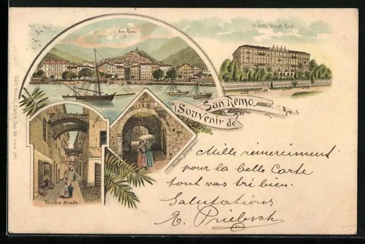 Lithographie San Remo, Hotel West-End, Vecchia Strada, Panorama