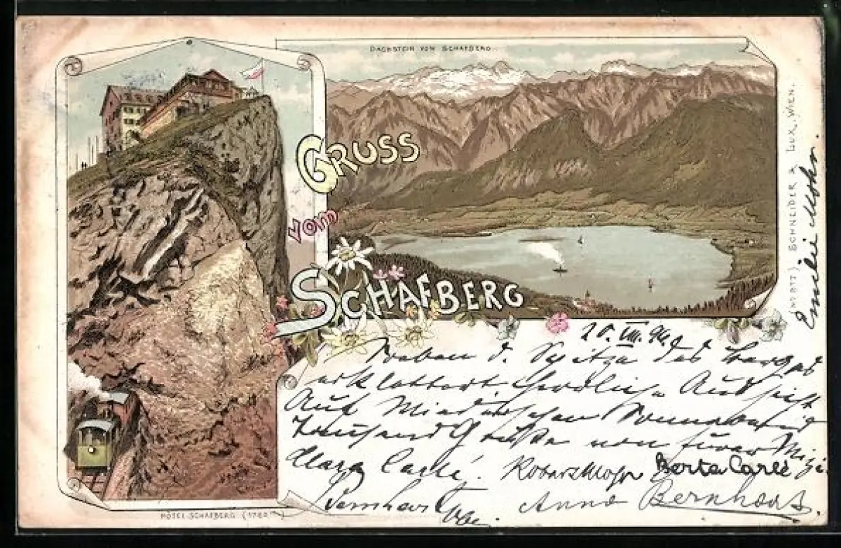 Lithographie Schafberg, Hotel Schafberg, Dachstein vom Schafberg