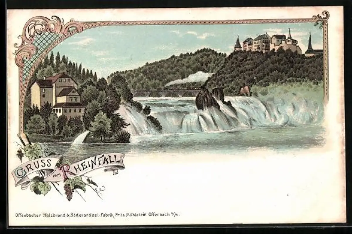Lithographie Schaffhausen, Ansicht vom Rheinfall