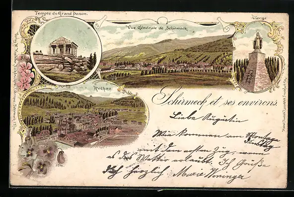 Lithographie Schirmeck, Temple du Grand Donon, Rothau, Vierge