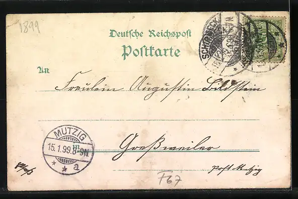 gelaufen 1899, Eckknick unten li., guter Zustand