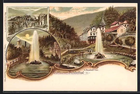 Lithographie Schönthal / Neustadt, Kurhaus Königsmühle, Wolfsburg