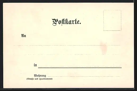 Personenbezogene Daten auf der Rückseite der Karte wurden durch blauen Textmarker unkenntlich gemacht. Die blauen Stellen sind auf die Vorderseite durchgeweicht und wirken sich negativ auf das Postkartenfoto aus