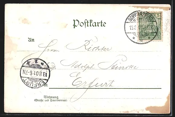 gelaufen 1901, rückseitig Klebe- und Papierreste, guter Zustand
