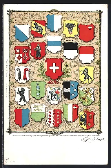 Lithographie Schweiz, Wappen der Eidgenössichen Kantone
