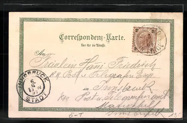 gelaufen 1897, Eckknick oben li., guter Zustand