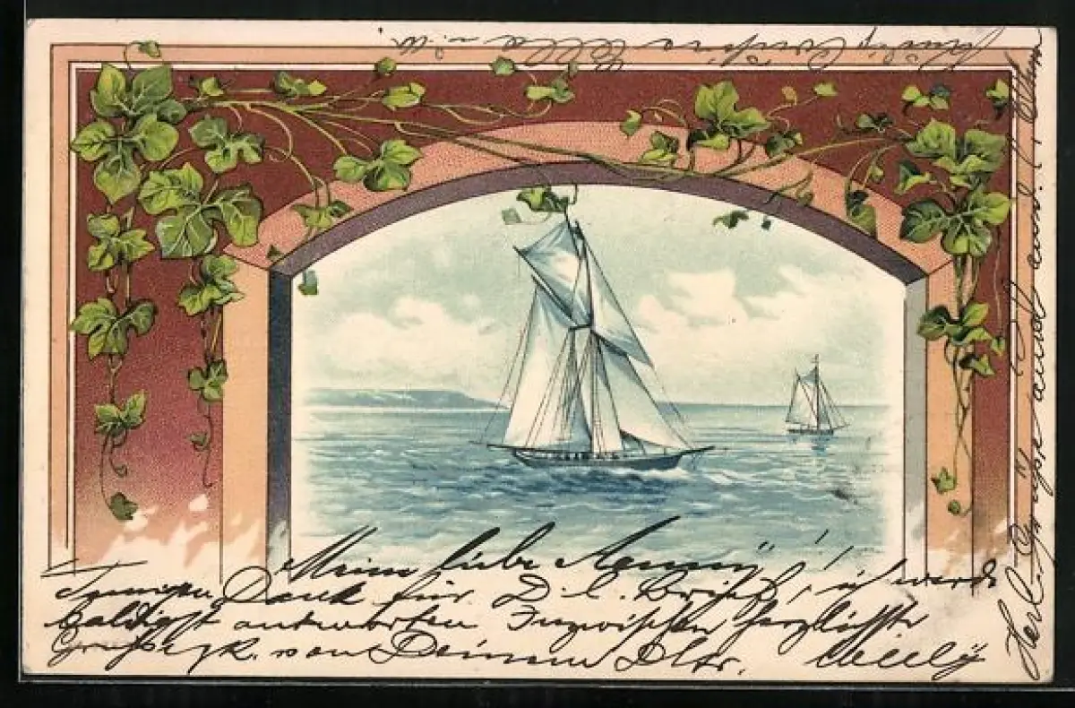 Lithographie Segelboote kreuzen auf dem Meer, Segelsport