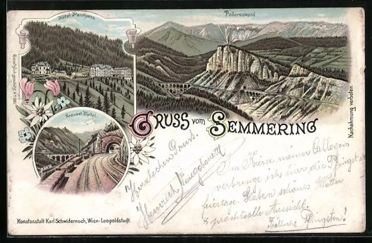 Lithographie Semmering, Krausel Tunnel, Hôtel Panhans, Polleroswand
